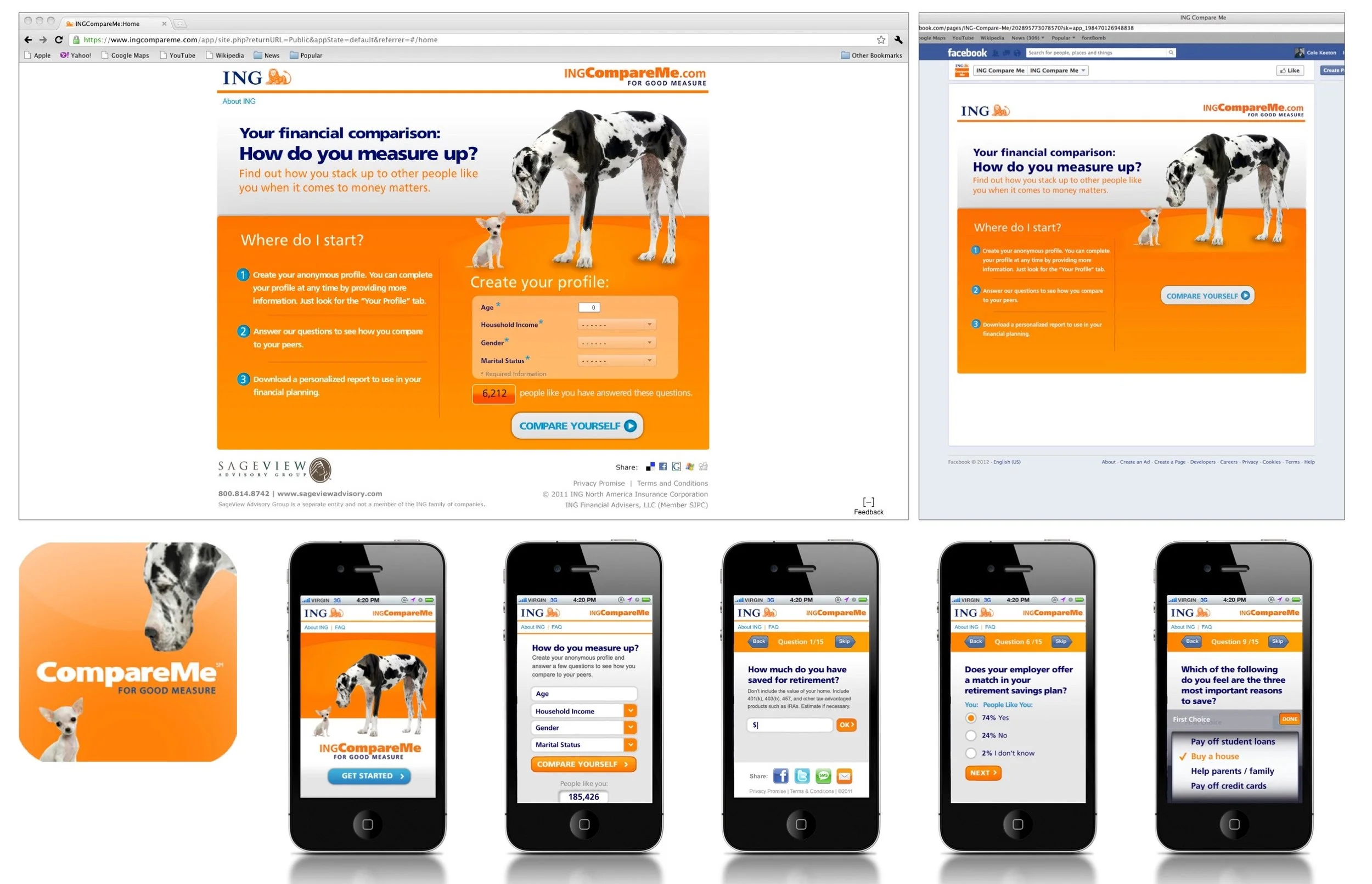 ING turned to us when they wanted to build an online tool that would allow customers to see how well they were saving for retirement compared to other people like them. I learned a lot working on this assignment, not the least of which was how to adapt a site to work across multiple platforms.